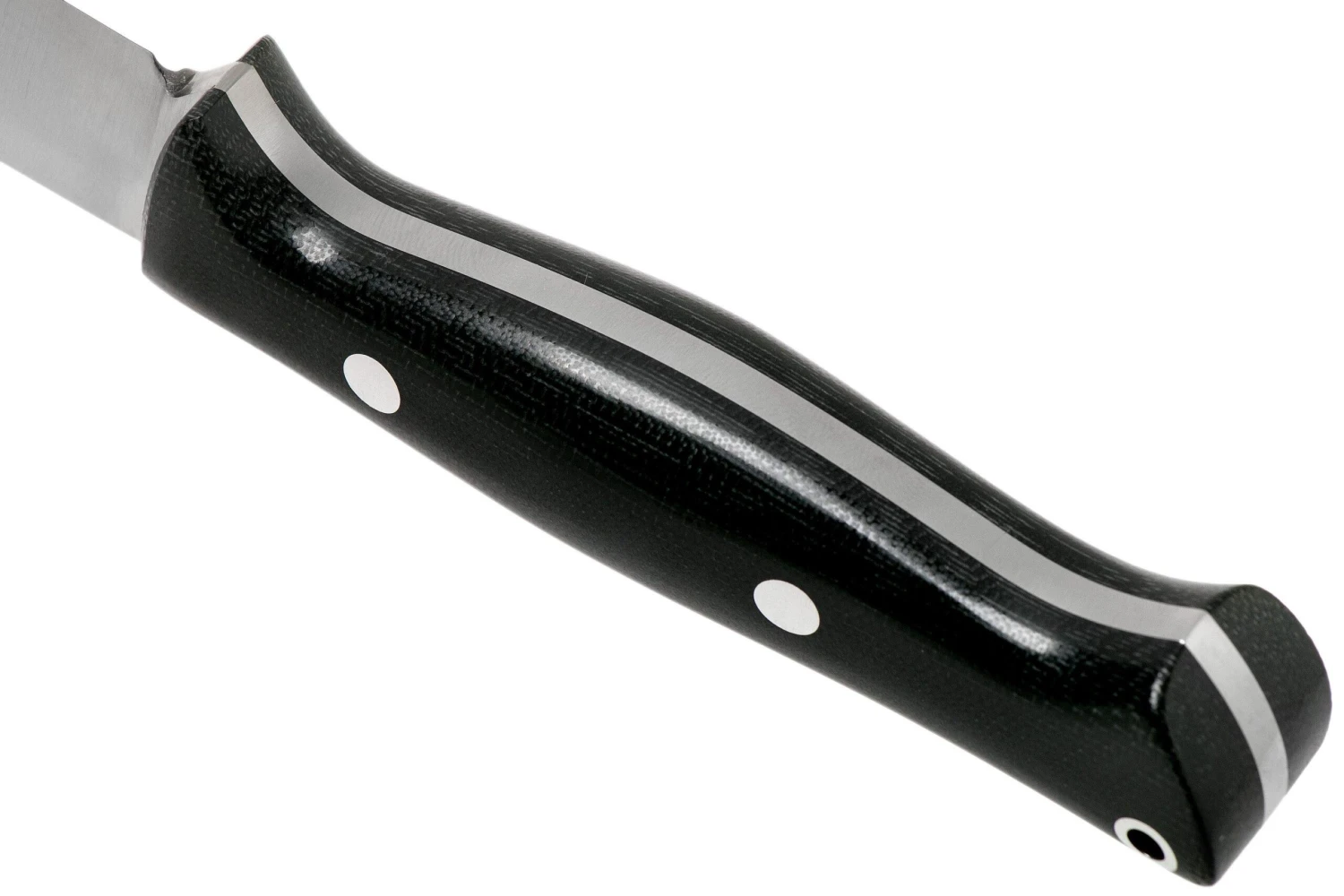El Bark River Gunny Hunter es una versión más compacta del Bravo 1. Originalmente este cuchillo fue diseñado para uso paramilitar. Sin embargo, pronto se hizo evidente que este cuchillo era capaz de mucho más. Hoy en día, el Gunny es un cuchillo muy popular entre los entusiastas de la caza y los cazadores. Tiene una construcción sólida con un grosor de hoja suficiente para las tareas más exigentes. Al mismo tiempo, es lo suficientemente ligero para las excursiones. Un cuchillo perfecto que se puede utilizar para muchos propósitos. Esta versión especial Hunter del Gunny está mejorada con un afilado de sable. Esto significa que el afilado es diferente a la del Gunny estándar. El Hunter es ligeramente más delgado detrás del filoy, por lo tanto, es más adecuado para las tareas de acampada y la caza. El Gunny Hunter tampoco tiene jimping o una rampa para el pulgar.