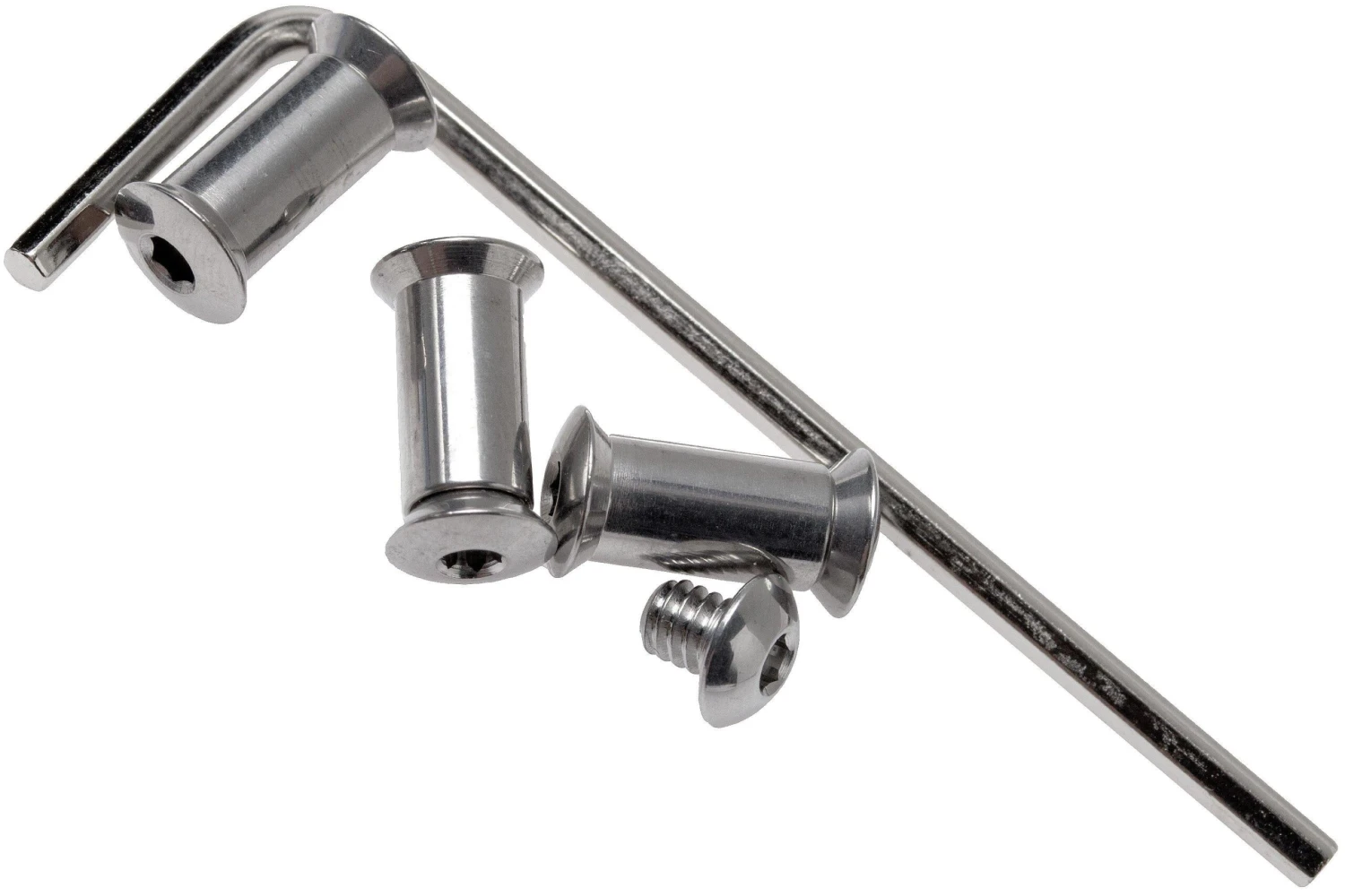 El Chris Reeve Large Sebenza 21/Umnumzaan Body Screw Kit es un juego con tres tornillos y pasadores y un tornillo de clip de bolsillo para el Large Sebenza 21 y Umnumzaan. Incluye una llave Allen para esta navaja. La llave Allen está fabricada en Alemania por Wiha.
