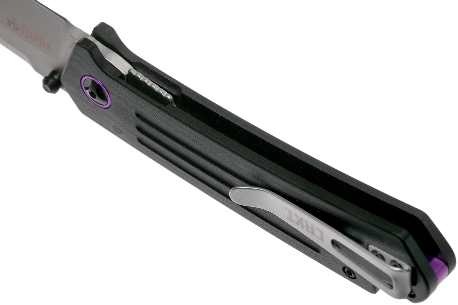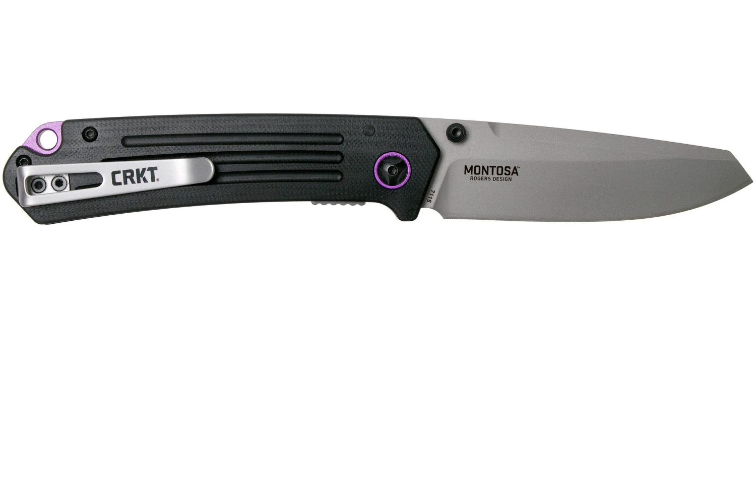 La CRKT Montosa 7115 es una navaja EDC genial, diseñada por Richard Rogers. Enseguida se notan los acentos de color púrpura brillante. A primera vista, hacen que el diseño bastante modesto parezca un poco más especial. La forma de la hoja es notable. Es una combinación de slipjoint y de «tanto invertido». De este modo, el cuchillo parece muy afable.