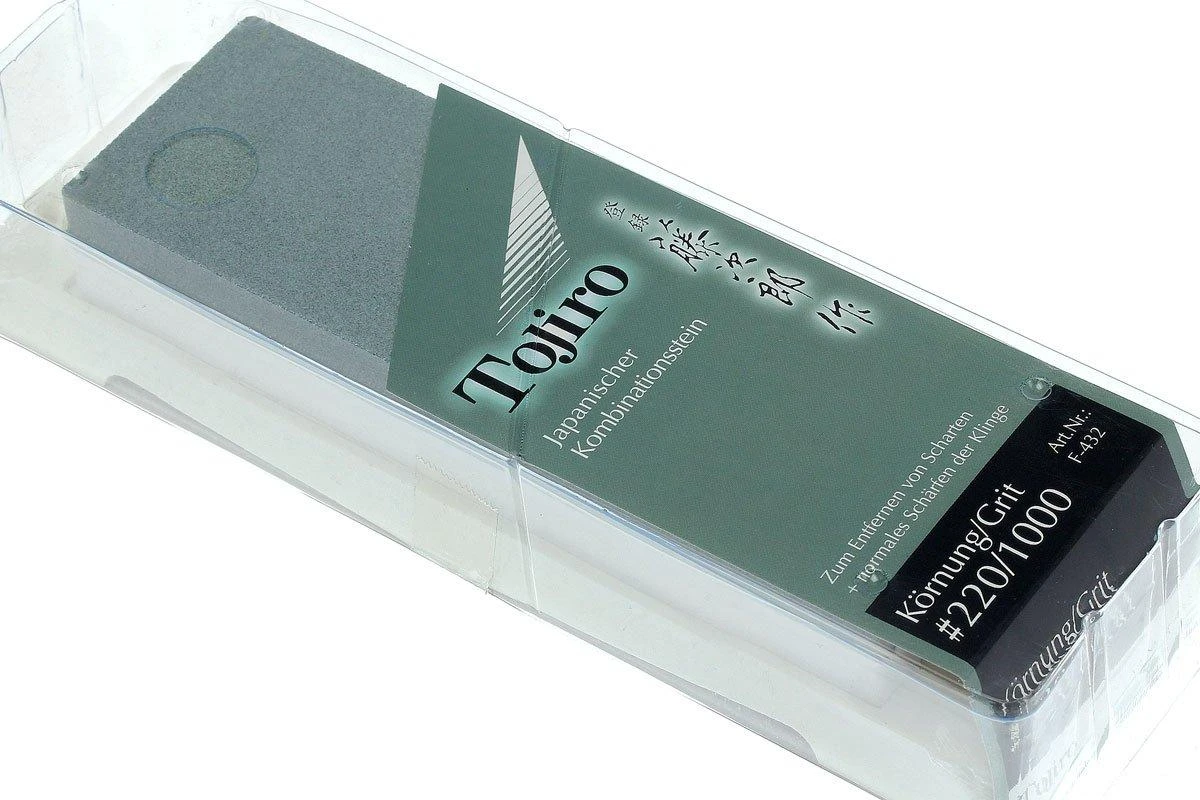 Esta piedra de afilar Tojiro 220/1000 es una piedra de afilar japonesa de doble cara que es genial a la hora de afilar todos tus cuchillos Tojiro (u otros cuchillos, por supuesto). Debido a los dos tamaños de grano diferentes, sólo se utiliza una piedra para afilar el cuchillo de romo a afilado.
